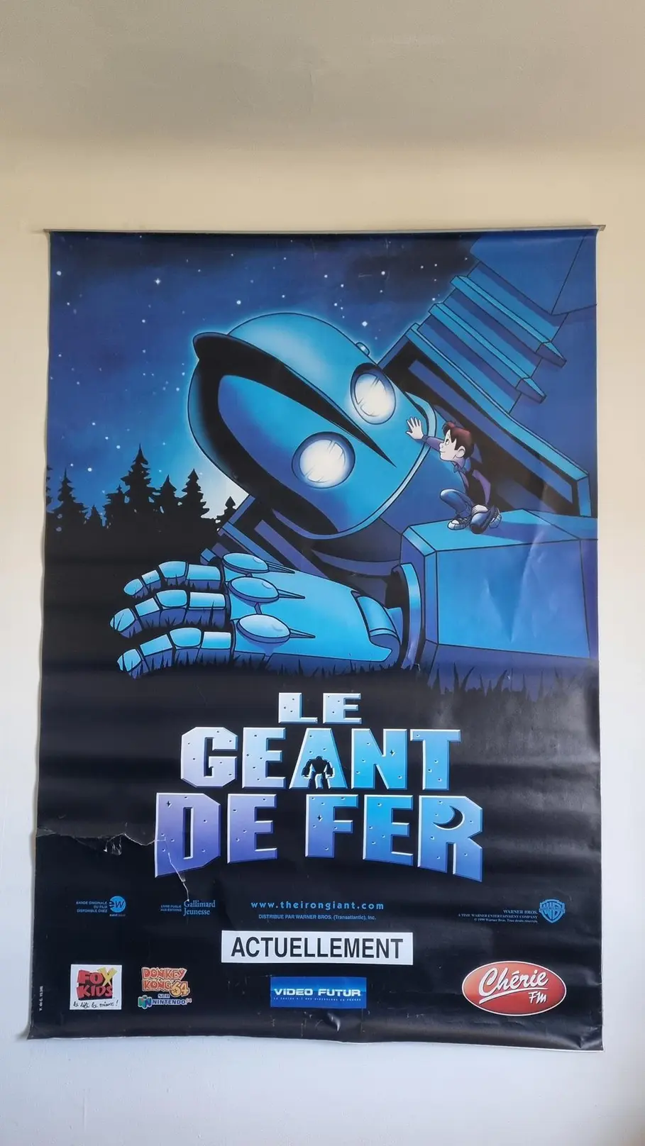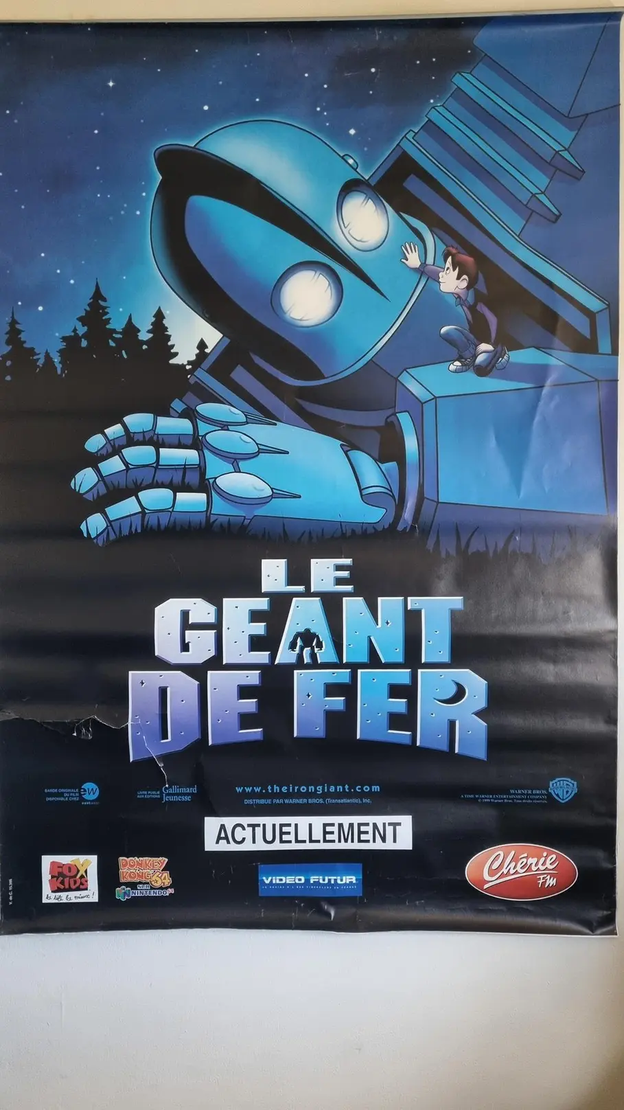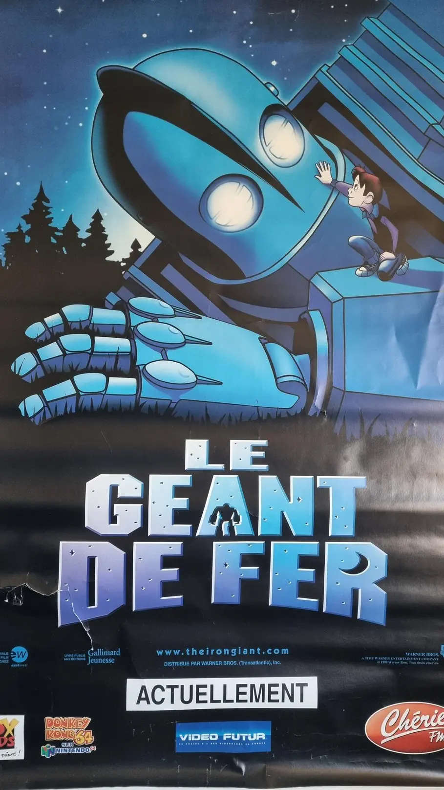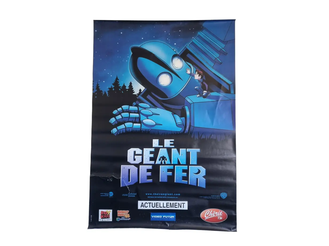 Authentique affiche de film “Le Géant de Fer”, le chef-d’œuvre d’animation de Brad Bird. Imprimée sur un papier dos bleu de qualité, typique des affiches destinées à l’affichage public, cette pièce de collection porte les marques de son histoire. Elle présente des déchirures au milieu ainsi que des usures sur les côtés, témoins de son vécu et ajoutant à son charme vintage. Une pièce rare et émouvante pour tout collectionneur ou admirateur du film.