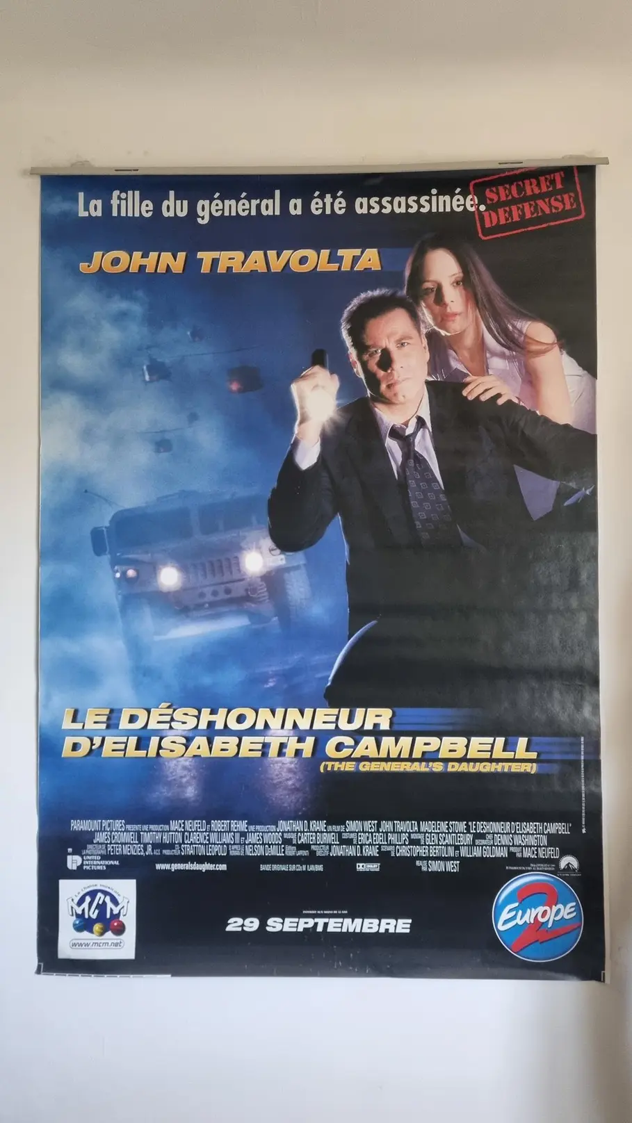 #AfficheDeFilm #Cinema #LeDeshonneurDElisabethCampbell #SimonWest #JohnTravolta #AfficheVintage #CollectionCinema #Thriller #DecorationMurale #PapierDosBleu