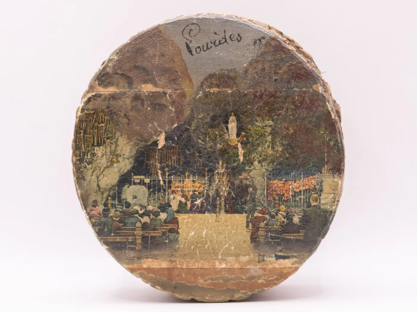 #boiteenbois #rondindebois #peintalamain #signeLourdes #boitevintage #artisanatfrancais #objetdecoreligieux #decorationrustique #boiteabijoux #faitmain