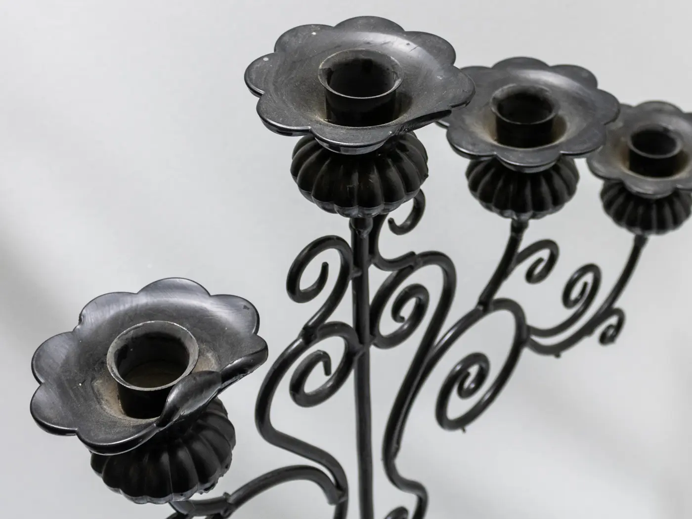 #chandeliernoir #bougeoirmetal #candelavintage #decorationinterieur #lumieredambiance #cinqbranches #artdelatable #objetdeco #secondemain #charmeancien