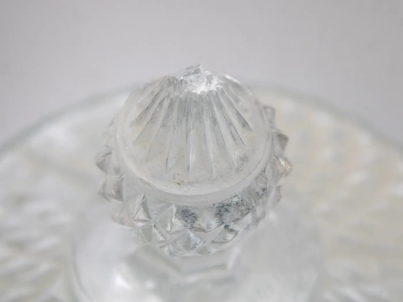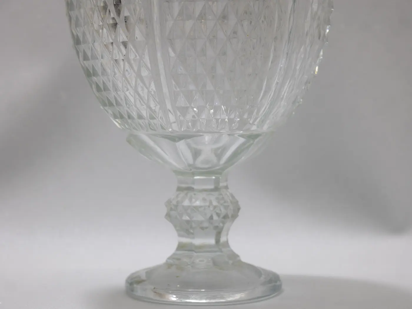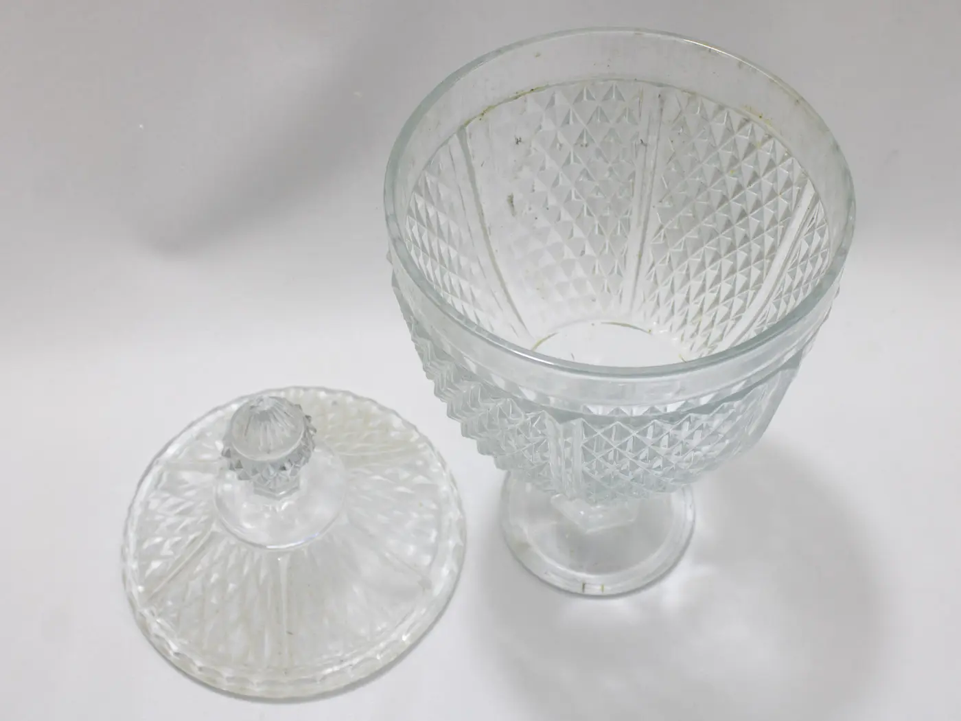Majestueuse bonbonnière vintage en verre pressé motif diamant
