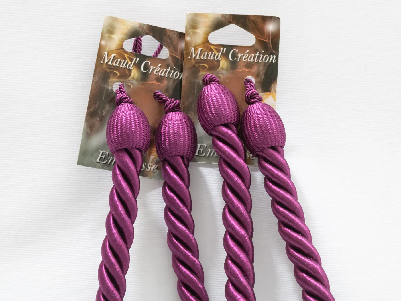 Sublimez vos rideaux avec cette magnifique paire d’embrasses bordeaux. Chaque pièce est une création artisanale signée Maud’création, entièrement faite à la main, garantissant une finition unique et soignée. Confectionnées avec soin en tissus de qualité, ces embrasses sont neuves et présentées avec leur étiquette d’origine, prêtes à ajouter une touche d’élégance à votre intérieur.
