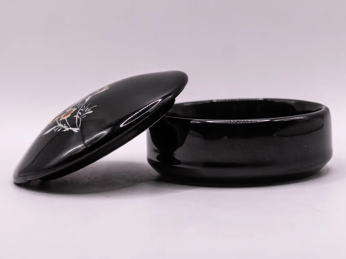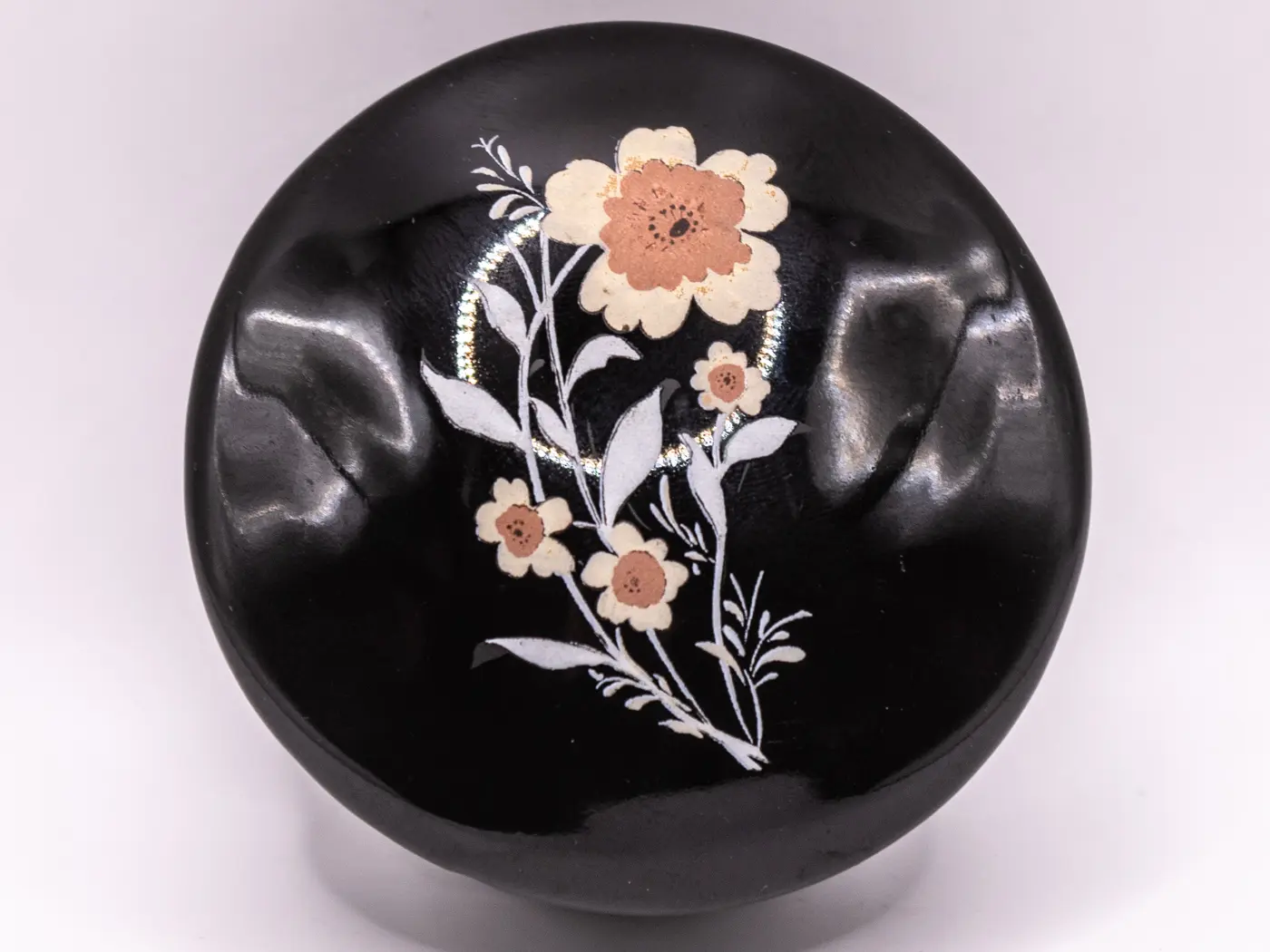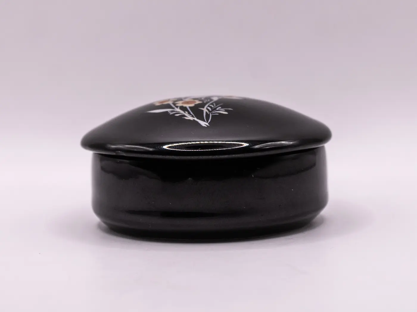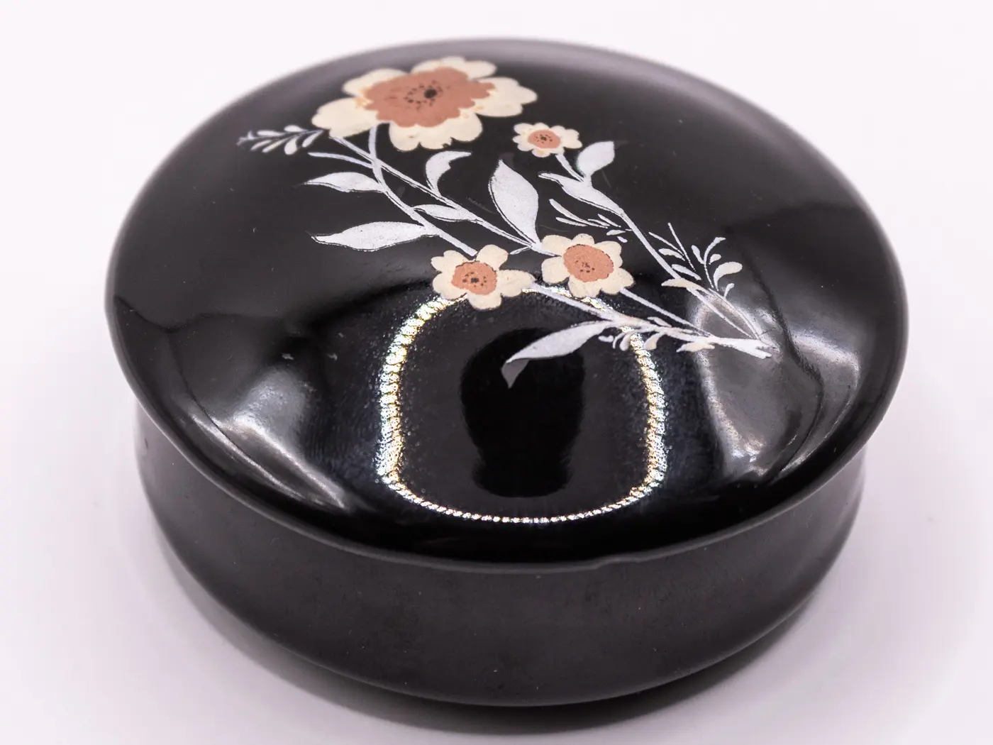Petite boite ronde asiatique en céramique à motifs de fleurs