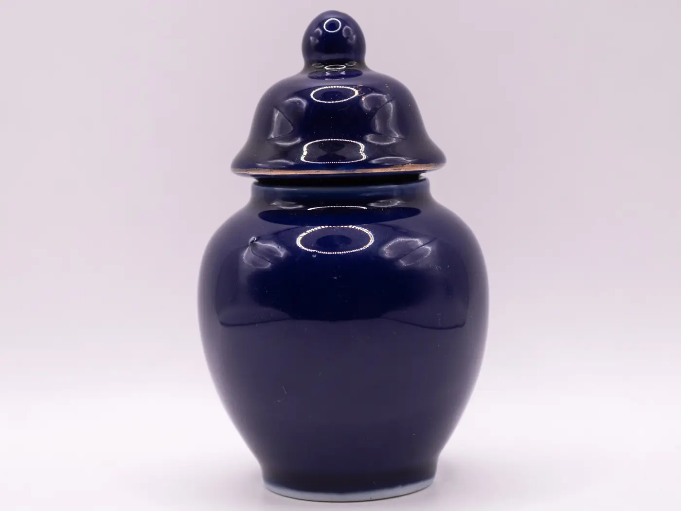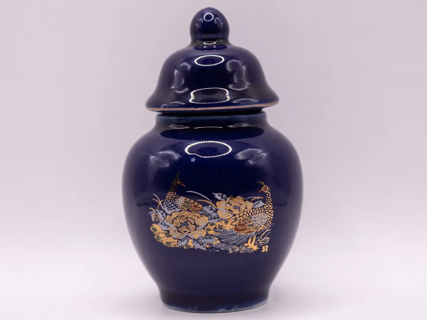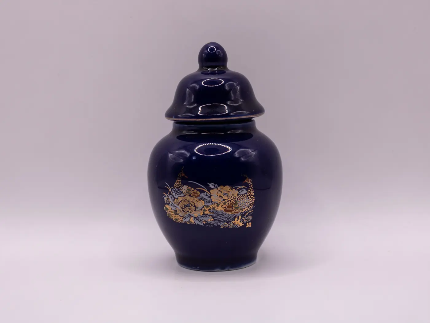 #potdecoratif #ceramiquebleue #decorationinterieur #artisanattaiwan #motifpaon #potacouvercle #objetdeco #styleasiatique #fleursdorees #cadeauoriginal