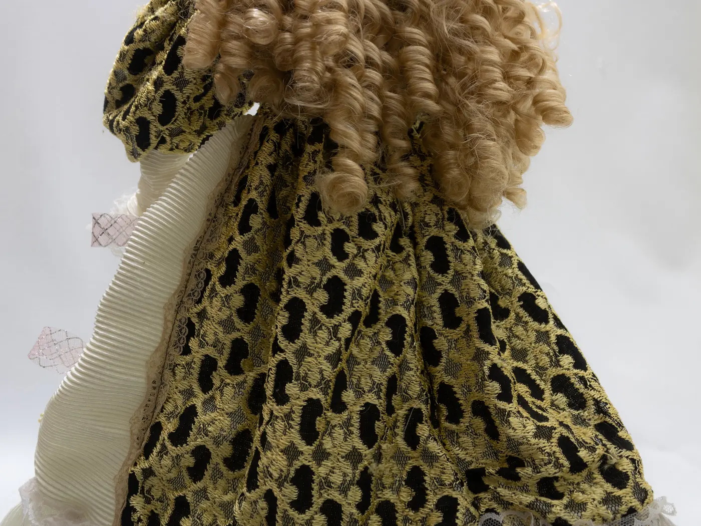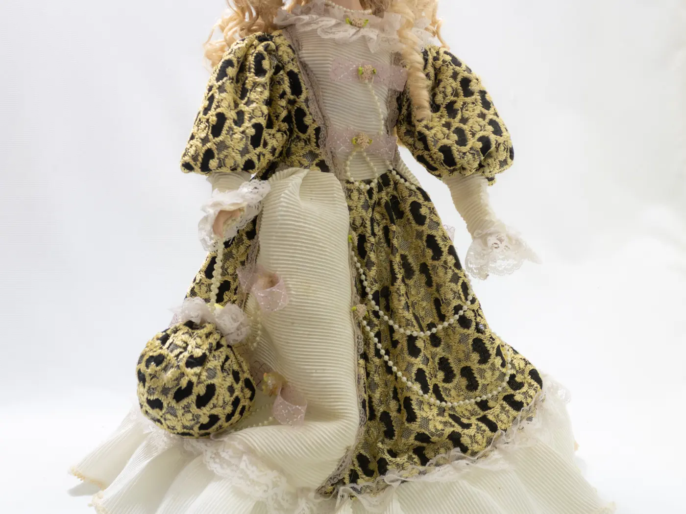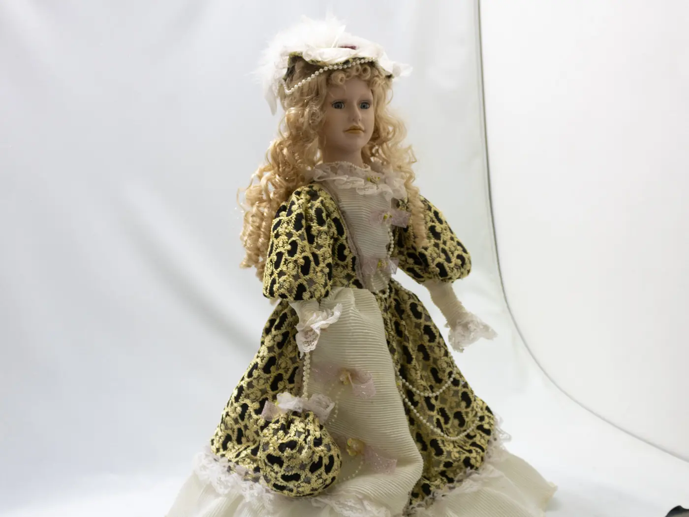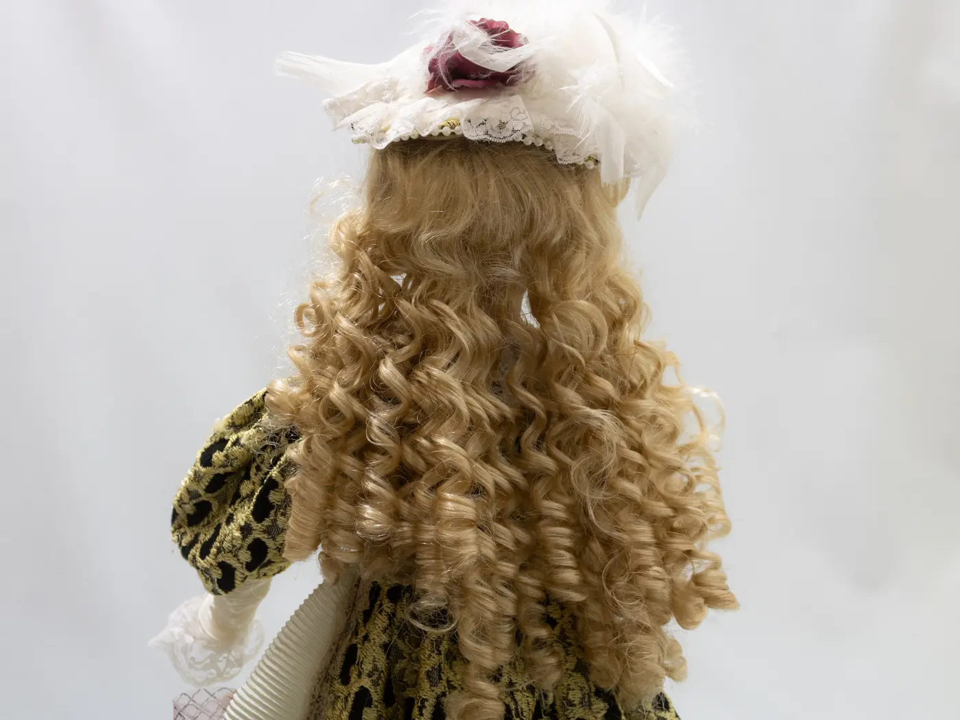 Succombez au charme intemporel de cette magnifique poupée de porcelaine blonde. Soigneusement confectionnée, elle arbore un visage délicat aux traits fins, caractéristique de la porcelaine de qualité. Sa tenue, composée d’une élégante robe bleue rehaussée de dentelle blanche et d’un chapeau assorti, lui confère une allure romantique et classique. Cette pièce de collection multicolore est un véritable trésor qui saura captiver les amateurs et apportera une touche de nostalgie et de raffinement à votre intérieur.